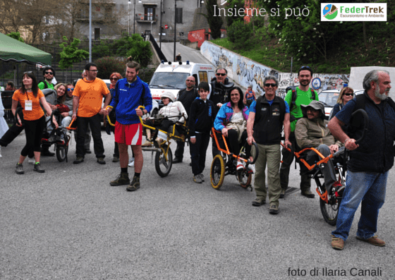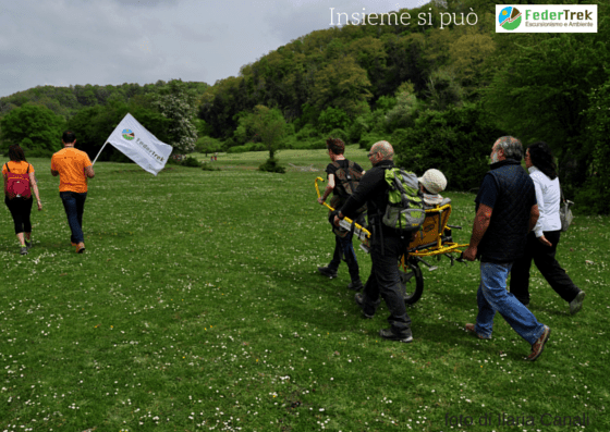 A costo di suonare pleonastici “insieme si può” significa innanzitutto quello che indica: unione. O meglio: il potere dell’unione. L’iniziativa costituisce infatti l’occasione concreta per fare esperienza di condivisione del cammino con tutti, senza eccezioni. L’obiettivo che gli organizzatori avevano in mente nel disegnare l’evento quest’anno, così come nelle passate edizioni , era infatti la promozione della camminata condivisa, quel modo di procedere insieme in grado di coinvolgere tutte le realtà, anche quelle più vulnerabili, a rischio di emarginazione sociale e in condizioni di disabilità motoria. Il cammino condiviso è possibile innanzitutto grazie al supporto di un particolare tipo di carrozzella, la Joelette, che consente di portare in escursione una persona che, magari anche solo per un problema temporaneo, non è in grado di muoversi autonomamente. Ma il cammino condiviso, al di là e oltre lo strumento tecnnico della Joelette, è fatto di un profondo esercizio di empatia. Del mettersi “nei piedi” dell’altro ad ogni passo.