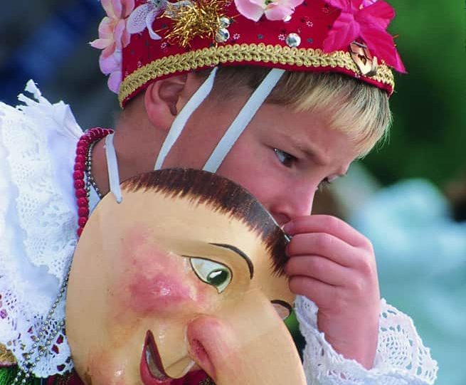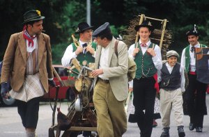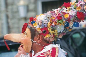 Ma il clou della “quattro giorni” si raggiunge la domenica pomeriggio quando costumi tradizionali riservati a poche occasioni, maschere scolpite in legno, gruppi e bande musicali attraversano il paese.