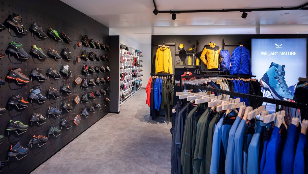 Il nuovo showroom ospita una vasta selezione di marchi, tra cui Salewa, marchio italiano radicato nelle Dolomiti, e Dynafit, noto per i suoi prodotti tecnici per lo sci alpinismo.
