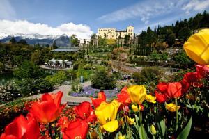 I Giardini di Castel Trauttmansdorff in 12 ettari di estensione, raccolgono oltre 80 ambienti botanici con piante provenienti da tutto il mondo raggruppate per aree tematiche: dai boschi di latifoglie sempreverdi originarie della Cina, Giappone e Florida, ai boschi di conifere con sequoie giganti del Nord America, la risaia, una bellissima piantagione di tè e la “Valle delle Felci” che custodisce antichi fossili.