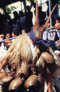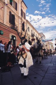 Al corteo si affiancano le maschere tipiche del carnevale barbaricino, quali i Merdules, i Thurpos e i Mamuthones che con sul volto la “Bisera”, la maschera lignea nera, procedono, saltellando in modo cadenzato verso destra e verso sinistra, in una sorta di danza, sotto il peso di un pesante mazzo di campanacci da bue legato sul dorso e una collana di sonagli più piccoli e leggeri bronzei appesi al collo e gli Issokatores, slanciati e colorati, che li dileggiano con la “soca”, una lunga fune, cioè, che ora è fatta di giunco per il solo uso carnevalesco, ma che anticamente era di cuoio pesante.