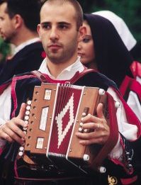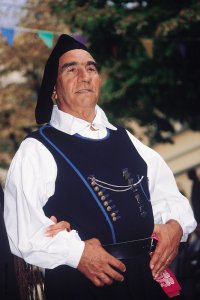 L’abito della donna risulta sicuramente più vivace e colorato rispetto a quello dell’uomo, più sobrio e severo, somiglianti tra loro, comunque suggestivo a vedersi: un copricapo, una camicia chiusa da bottoncini d’argento e d’oro, un corpetto di lana, velluto o broccato, gilet con inserti multicolori, calzoni di tela bianca e un gonnellino di colore nero.