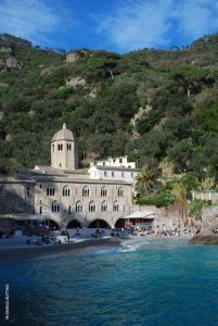 Si cammina timidamente sui ciottoli della piccola spiaggia per non rompere l’incanto: alle spalle il bellissimo complesso monumentale, davanti l’orizzonte del mare, a destra e a sinistra gli scogli di puddinga che racchiudono questo piccolo spazio vitale riservato ai trekker in ascolto della risacca del mare, un antico idioma che solo il vero ligure riesce a decifrare.