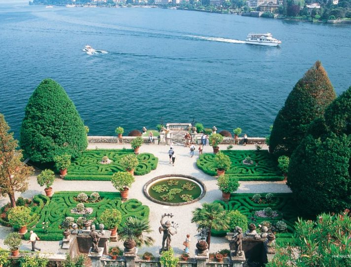 Quasi subito incontriamo a breve distanza da Stresa l’Isola Bella. Ci avviciniamo con la lentezza propria della navigazione ai giardini terrazzati che si presentano come una sorta di anticamera immaginata dall’uomo e ornata dalla natura al Palazzo Borromeo. La forma stessa dell’isola, così come ritagliata dall’architettura del giardino, sorprende il viaggiatore che arriva dall’acqua. Chi progettò i Giardini (info: 032330556, aperti da fine marzo a fine ottobre) diede all’isola la forma di un vero è proprio vascello ancorato nel Golfo. L’origine del nome è legato alla sua storia.