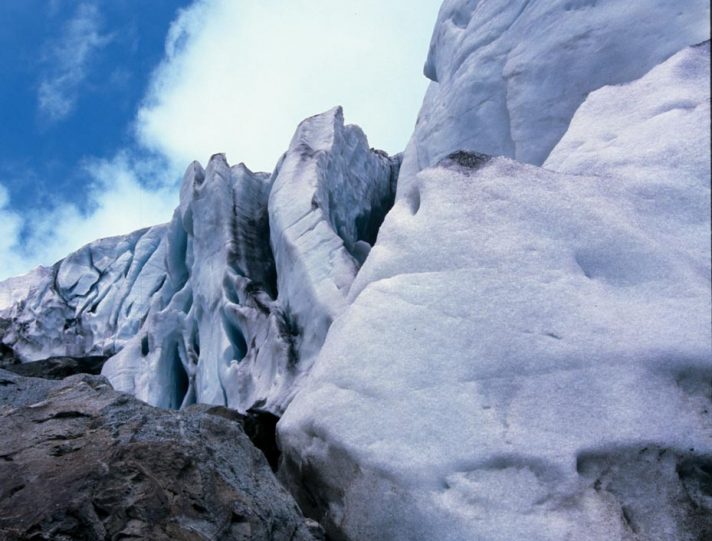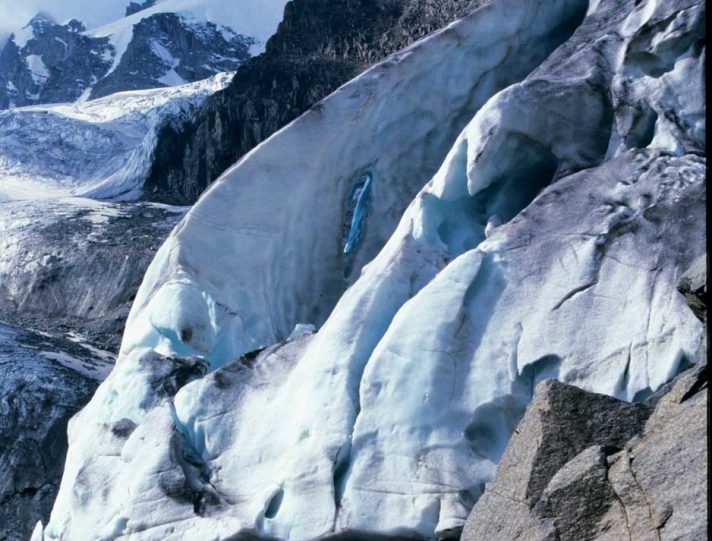 Se, per esempio, deciderete di raggiungere d’estate la vetta del Gran Paradiso (m 4061) partendo dal rifugio Chabod (m 2750), dovrete camminare almeno un’ora sul sentiero roccioso che risale gli sfasciumi della morena del ghiacciaio di Laveciau prima di indossare i ramponi e mettere i piedi sulle lingue grigiastre e detritiche del ghiacciaio.