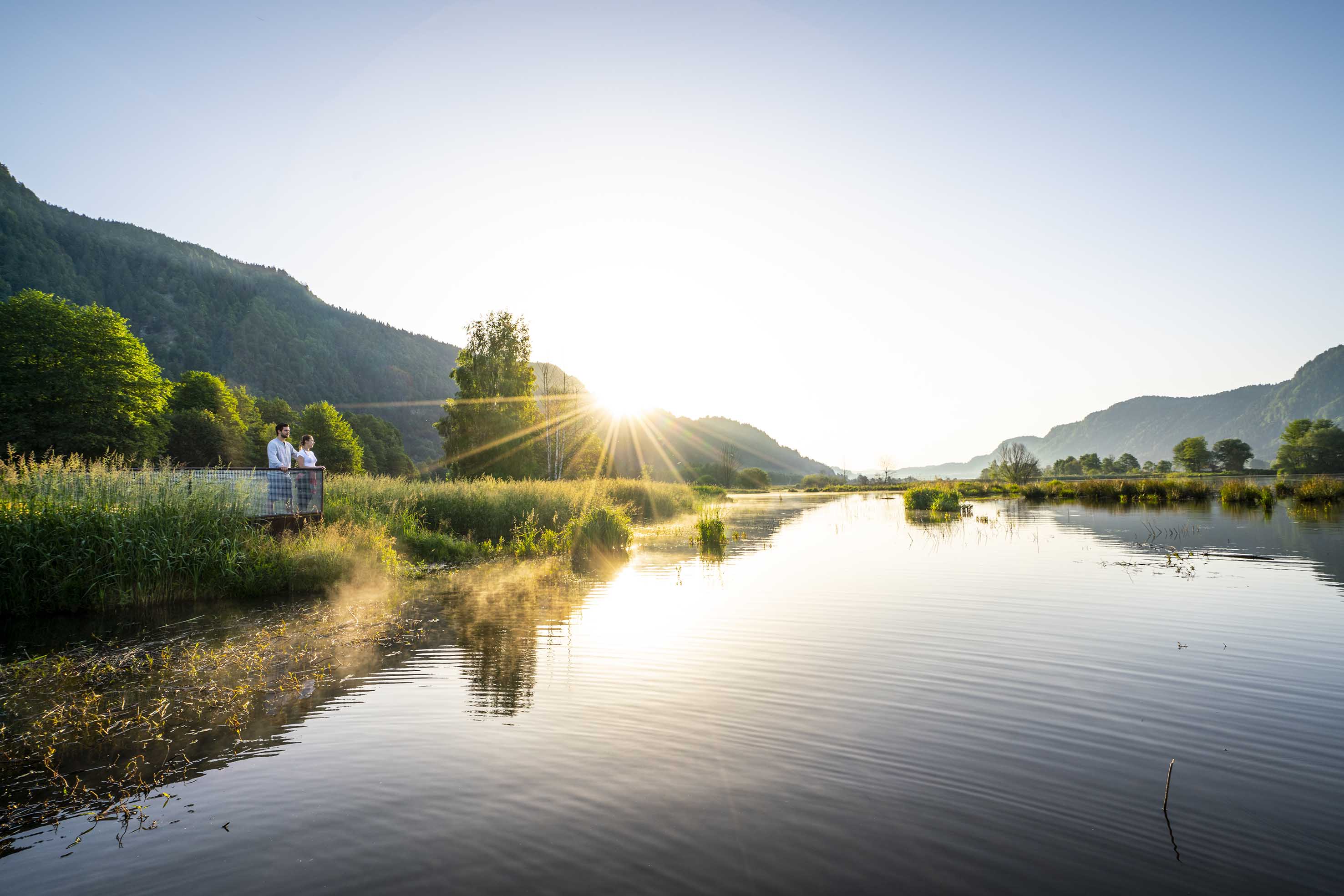 Questo particolare tratto del fiume, il principale della Carinzia, è un prezioso habitat per la nidificazione e la sosta sulla via migratoria di varie specie di uccelli.