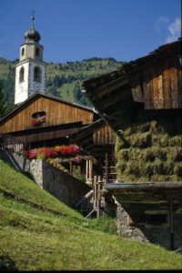 All’istituzione giuridica corrisponde anche una tipologia abitativa: coltivi e pascoli circondano il maso, generalmente con il primo piano in pietra ed i piani superiori in legno ed il tetto in “scandole” (tavole grezze di larice) , fissate con robusti rami trasversali o pietre.
