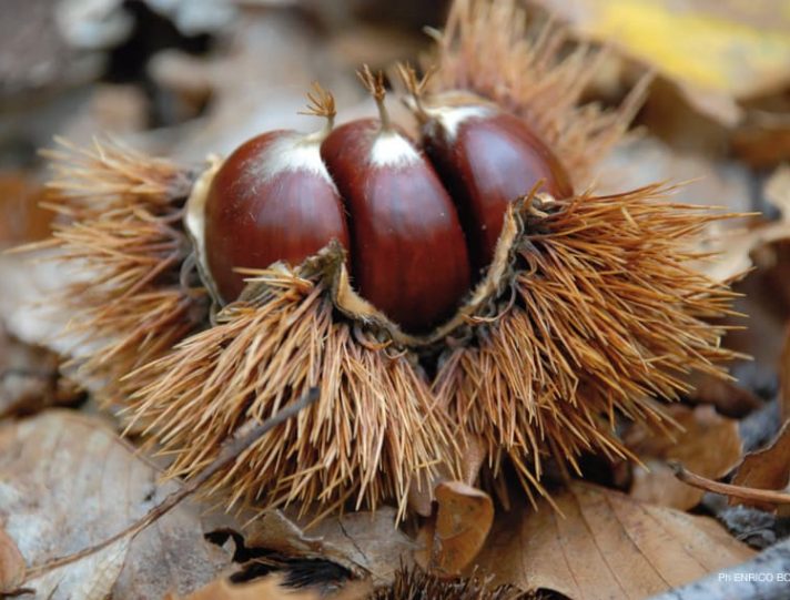 Ma andiamo per ordine! La castagna veniva raccolta in autunno e, fino agli anni ‘50, vigeva una vera e propria regolamentazione della “castagnadura”: in molti paesi il parroco annunciava la “banditura” (generalmente il 29 settembre in occasione della festa di San Michele) e da quel giorno il bestiame veniva ricondotto in stalla mentre i proprietari dei castagneti, insieme alle “raccoglitrici” (alle quali spettava vitto, alloggio e un quintale di farina dolce) davano inizio alla raccolta. La prima passata, definita “a scorrere”, veniva effettuata per liste, ovvero venti e più persone, disposte in linea, risalivano insieme la china del castagneto.