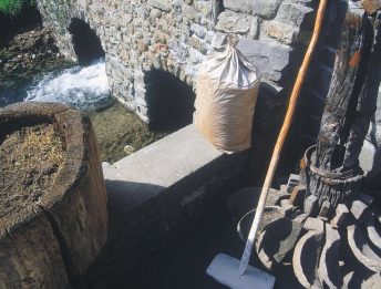 Giungeva così il momento dalla molitura, operata nei mulini a ruota idraulica orizzontale; qui il connubio tra pietra e acqua dava vita al “pane della Lunigiana” che in parte spettava al mugnaio quale ricompensa (la moldura). L’acqua dei torrenti veniva guidata lungo condotte che la forzavano contro le pale del ritrecine; l’energia cinetica azionava così la macina al piano superiore.