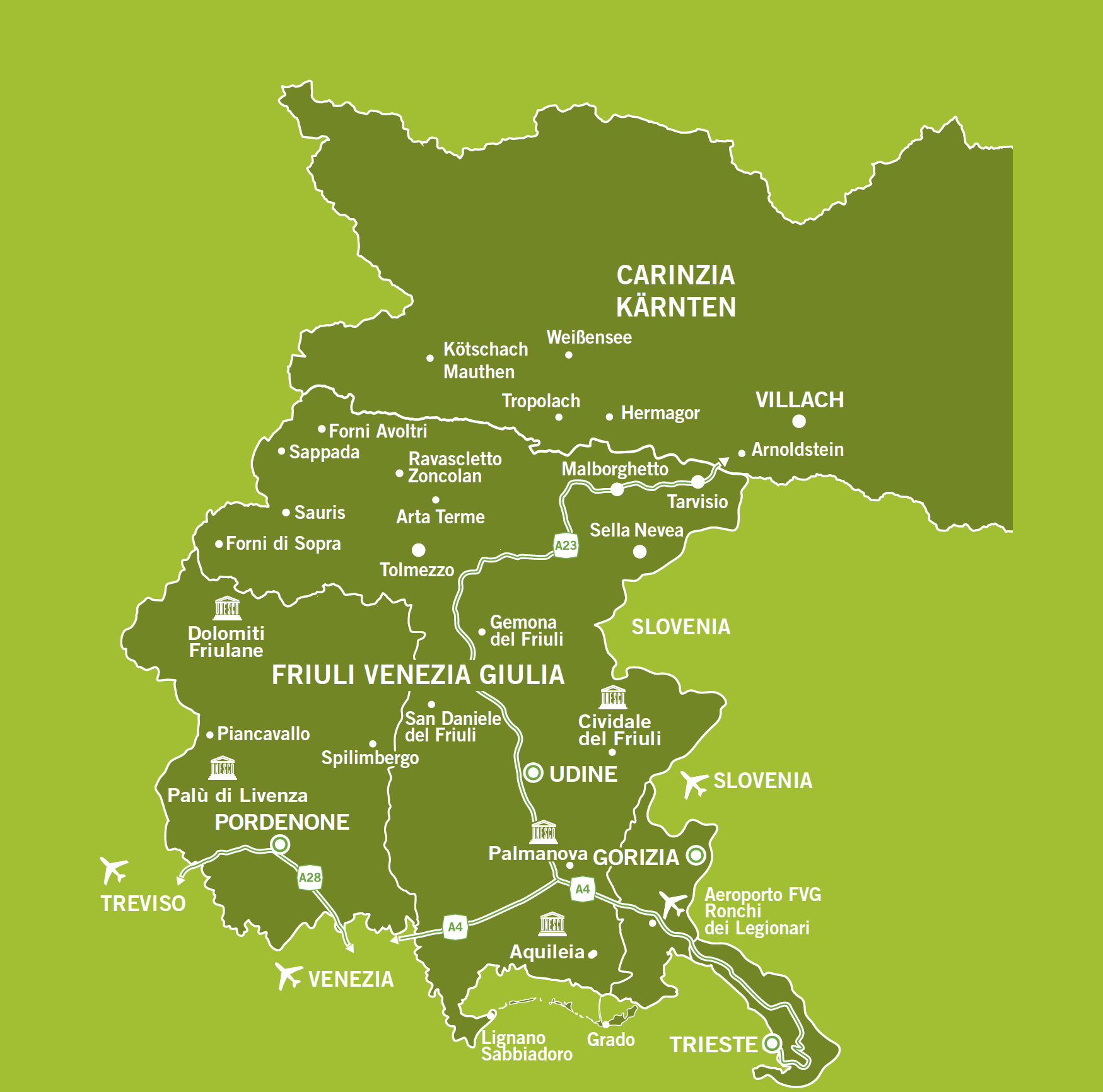 Nella parte più a est d’Italia c’è il Friuli, una regione cinta a nord da una catena di montagne che segnano il confine geografico con l’Austria.