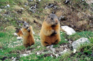 Dalla metà di aprile la Marmota marmota è una specie facilmente osservabile su tutte le praterie subalpine e le pietraie assolate del Parco Naturale delle Alpi Marittime. Anche nelle Valli di Lanzo non è inusuale incontrare stambecchi, in tarda primavera, e ovviamente marmotte, in particolare lungo i pascoli che circondano l’Alpe della Rossa.