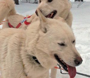 Johanna ha altri cani oltre gli Husky. Ne ricordo uno “supercoccolone”, felice di correre accanto alla slitta e accanto alla muta, ma lui non era un Husky.