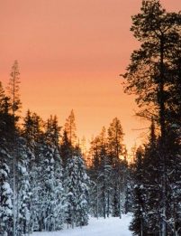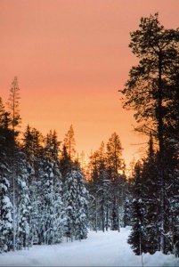 Procediamo in silenzio, sperando di vedere uscire qualche renna dalla foresta silenziosa.
