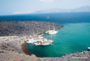 Santorini è un’isola vulcanica, costituita da un ampio cratere sventrato in parte per un fenomeno sismico avvenuto in età preistorica e invaso successivamente dal mare (Ph Enrico Bottino)