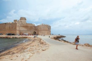 → Dalla Chiesa di Santa Maria del Soccorso, prendere la SS.107bis in direzione Crotone e percorrerla per 20,7 chilometri. Alla rotatoria prendere la prima uscita ed imboccare la SS.106 direzione Crotone per 5,6 chilometri fino ad arrivare in città dove non mancheremo di visitare il Castello di Carlo V. Fu il re Carlo V ad armare e modificare l’antica rocca bizantina per motivi strategici e difensivi. All’attuale fortificazione vi si accede attraverso il suggestivo ponte levatoio in legno, che sovrasta il fossato. I baluardi San Giacomo, che si affaccia sul porto, e Santa Maria erano rifugio per le truppe; la Torre Comandante e la Torre Aiutante erano dimora degli ufficiali, mentre oggi sono state restaurate ed adibite a spazi museali. La Torre Marchesana sorge all’interno della fortezza ed era un ottimo punto di osservazione verso il mare. Era armata di 4 cannoni e sede della prigione “La Serpe”. Purtroppo è stata danneggiata durante il terremoto del 1862, ma in futuro sono previsti lavori di restauro e recupero totale.
