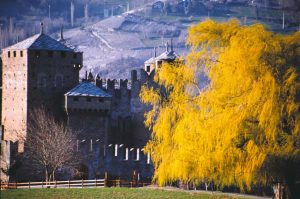 Il viaggio tra storia e fantasia prende avvio in Valle d’Aosta, e precisamente al Castello di Fénis , magnifico edificio che rappresenta il prototipo del castello medioevale. Risalente al 1300, ha da sempre rivestito la funzione di dimora sontuosa della potente famiglia Challant, tanto da custodire preziosi affreschi attribuiti a Giacomo Jaquerio e dipinti tra il 1425 e il 1430. Dipinti che, nella fiction televisiva, fanno la loro comparsa alle spalle del vescovo di Bressanone, mentre l’esterno si presta alla raffigurazione di Castelrovo, dimora del cattivo di turno.