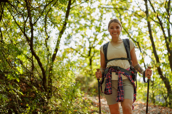 Un’ottima strategia per rendere la camminata un’attività completa è quella di utilizzare bastoncini da trekking.