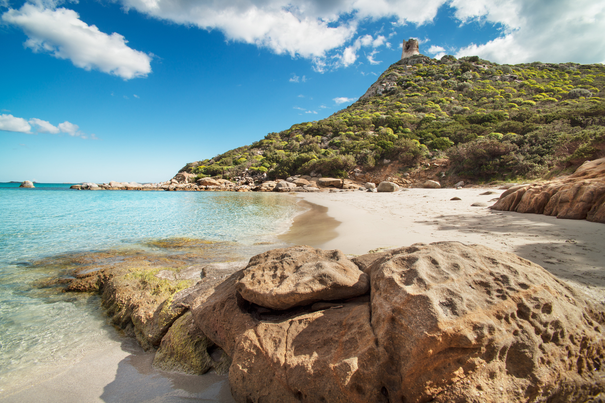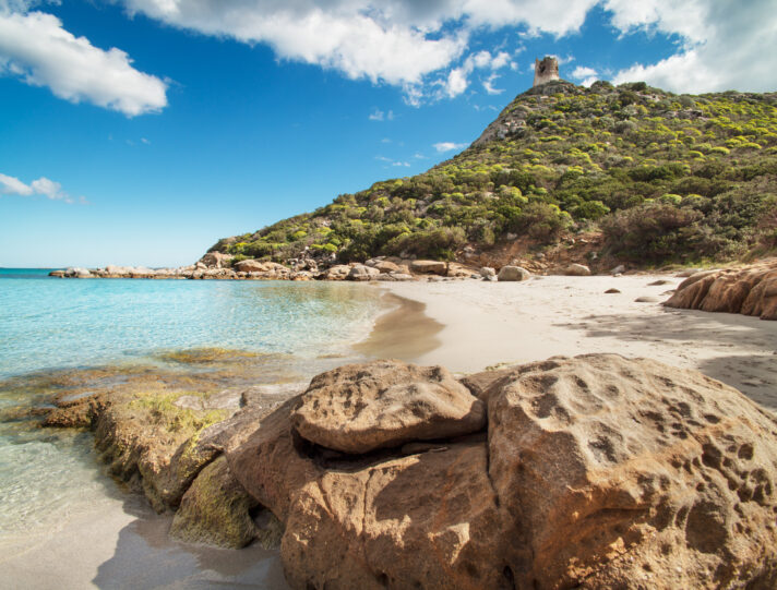 Serve prendersi il tempo di camminare, infilare scarpe leggere, e lasciarsi guidare dai profumi della macchia, dalle torri antiche e dai sentieri che conducono a calette luminose e silenziose. Queste cinque spiagge non sono solo luoghi dove fare il bagno: sono esperienze da raggiungere passo dopo passo, spesso attraverso paesaggi che valgono quanto la meta. Per chi vuole scoprire il volto più autentico e selvaggio delle spiagge del sud Sardegna. 1 – Punta Molentis, Villasimius: acque trasparenti Raccolta, elegante e protetta da due promontori, Punta Molentis sembra una piccola oasi fuori dal tempo. Prende il nome dai “molentis”, gli asini che un tempo venivano usati per trasportare i blocchi di granito, ancora visibili nella zona. La spiaggia ha la forma di una mezzaluna perfetta, con sabbia chiara e fine, mare calmo e sfumature tra il verde acqua e l’azzurro intenso. Ph.: Gettyimages/pkazmierczak È uno di quei luoghi in cui il paesaggio sembra disegnato da un artista: la vegetazione bassa e profumata, i massi granitici che emergono dall’acqua, e il silenzio che si conserva nonostante la fama. Punta Molentis è perfetta per nuotare, fare snorkeling o semplicemente restare immobili ad ascoltare il mare. Si può raggiungere in auto lungo la SP17, ma l’accesso è regolamentato nei mesi estivi (posti limitati e a pagamento). Dal parcheggio si cammina per circa 5–7 minuti lungo un sentiero pianeggiante che si apre improvvisamente sulla baia. Il percorso è semplice, ma conviene arrivare presto al mattino per godersi la calma del posto. _ Tutte le informazioni utili sulla spiaggia 2 – Cala Pira, Castiadas: paradiso incontaminato Tra Villasimius e Costa Rei, nascosta tra promontori dolci e silenziosi, Cala Pira è una delle spiagge più tranquille del sud Sardegna. Si tratta di una piccola baia protetta dal vento, con sabbia candida, mare trasparente e acqua che degrada lentamente. Alle spalle si trova una torre aragonese che guarda il mare da secoli e offre un punto panoramico suggestivo, raggiungibile a piedi con una breve salita. Ph.: Gettyimages/pkazmierczak Cala Pira è un luogo discreto e intimo, ideale per chi vuole rallentare e staccare dalla folla. Il silenzio è spesso interrotto solo dal fruscio della vegetazione e dal suono dell’acqua sulle rocce. I colori al tramonto, quando il sole si riflette sulla sabbia dorata, sono da cartolina. Si arriva dalla SP18, in direzione Castiadas. Il parcheggio è sterrato e si trova a pochissima distanza dalla spiaggia. Da lì, un breve tratto a piedi (circa 3–4 minuti) porta alla sabbia, passando tra ginepri bassi e cespugli di mirto. Il sentiero è pianeggiante e adatto anche a chi ha bambini. _ Tutte le informazioni utili sulla spiaggia 3 – Su Giudeu, Chia, Domus de Maria: sabbia infinita Ampia, dorata e immersa tra dune alte e profumate, Su Giudeu è uno dei paesaggi marini più iconici della zona di Chia. Il fondale è basso per decine di metri, l’acqua ha sfumature limpide che virano dal celeste al turchese, e il panorama è reso ancora più interessante da un isolotto roccioso (Isola Su Giudeu) facilmente raggiungibile a piedi, grazie alla marea che si abbassa nelle ore giuste. Ph.: Gettyimages/Alessio Panarese Qui si viene per godersi lo spazio, il vento leggero e la sensazione di libertà che solo le grandi spiagge sarde riescono a dare. Alle spalle, lo stagno di Spartivento ospita uccelli migratori e offre riparo a chi vuole camminare lontano dal sole. Si può arrivare a piedi da diversi parcheggi a pagamento lungo la SP71. Passerelle in legno e sentieri sabbiosi ben curati portano alla spiaggia in pochi minuti. Il percorso è semplice, accessibile anche a chi ha passeggini o zaini da trekking. Nella zona ci sono alcuni chioschi e servizi, ma basta spostarsi di qualche centinaio di metri per ritrovare il silenzio. _ Tutte le informazioni utili sulla spiaggia 4 – Cala Cipolla, Chia, Domus de Maria: colori e profumi Più raccolta e selvaggia rispetto a Su Giudeu, Cala Cipolla è una piccola baia chiusa tra due promontori granitici ricoperti di macchia mediterranea. La sabbia è chiara, morbida, incorniciata da rocce affioranti e da una pineta alle spalle. Il mare è profondo già a pochi metri dalla riva, limpido e perfetto per nuotare. Ph.: Gettyimages/pkazmierczak La bellezza di Cala Cipolla sta nella sua atmosfera raccolta e protetta. Qui, il vento arriva attutito, i rumori della strada sono lontani, e si ha la sensazione di essere in un luogo quasi segreto. È il posto giusto per una giornata di mare contemplativo, con una buona lettura e qualche tuffo in acque trasparenti. Dal parcheggio principale di Su Giudeu si prosegue a piedi lungo un sentiero di circa 5–7 minuti, in leggera discesa e immerso nella vegetazione. Il percorso è facile, anche se non adatto ai passeggini. Non ci sono bar né stabilimenti: tutto ciò che serve va portato con sé. _ Tutte le informazioni utili sulla spiaggia