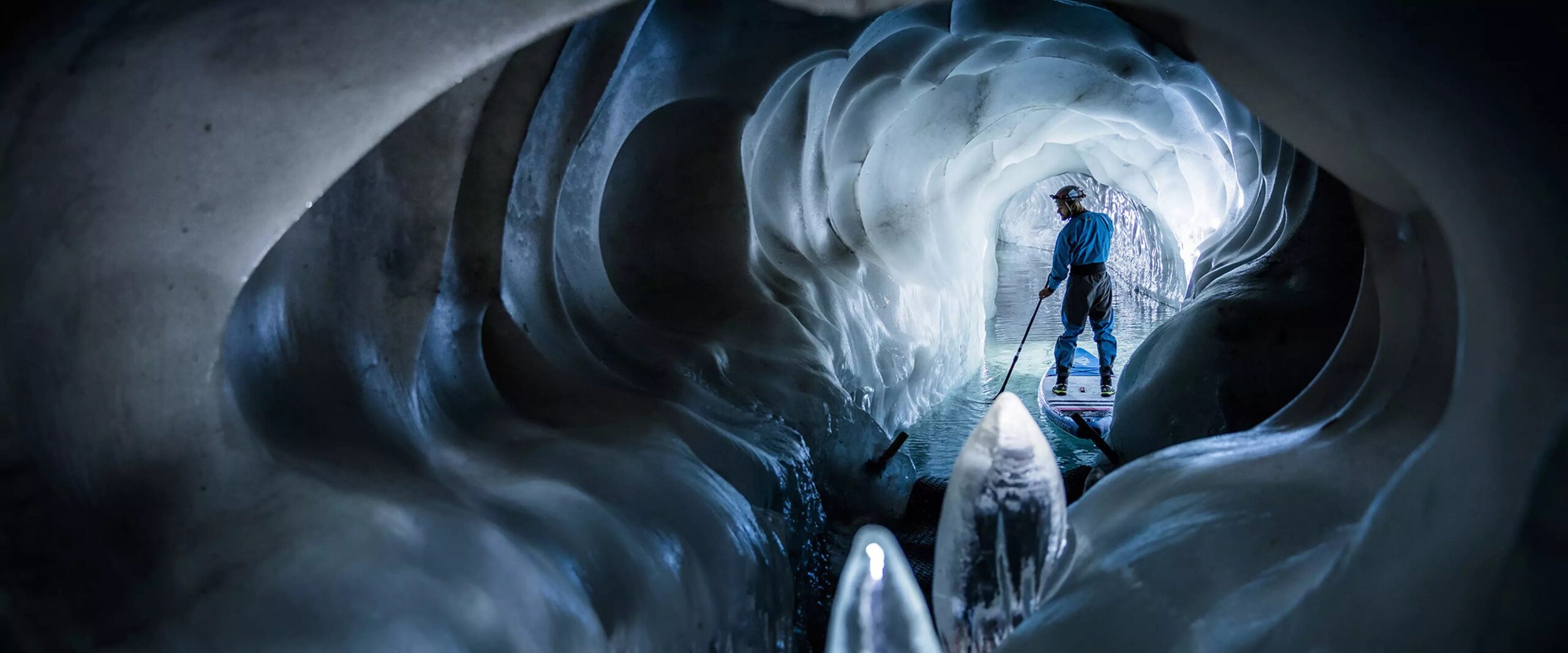 Nuotare in acqua a pochi decimi sopra lo zero, camminare all’interno di grotte scolpite dal ghiaccio, scivolare lentamente su un fiume sotterraneo con una canoa.
