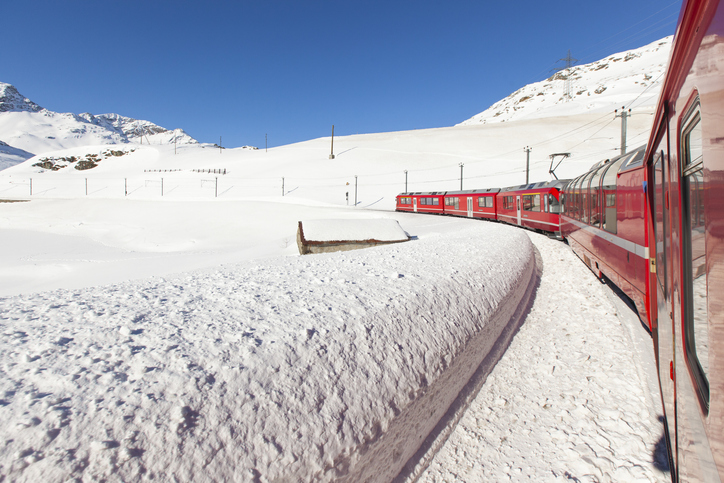 Il cosiddetto “trenino rosso del Bernina” è uno dei modi più suggestivi per arrivare in Engadina durante l’inverno.