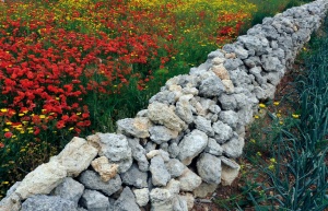 E poi, gli antichi muri di pietra a vista, tagliati regolari e perfetti nella docile roccia paglierina delle limestones, enorme banco di tufo e arenaria dall’inconfondibile colore dell’agrume mediterraneo che ha dato il materiale per costruire borghi e fortezze.