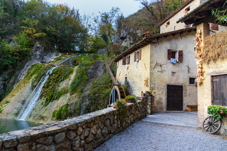 Refrontolo è un borgo raccolto, dove il Molinetto della Croda appare come immagine sospesa fra pietra, acqua, legno, ricordando un tempo in cui l’acqua muoveva macine, trasportava grani, alimentava vite e case.