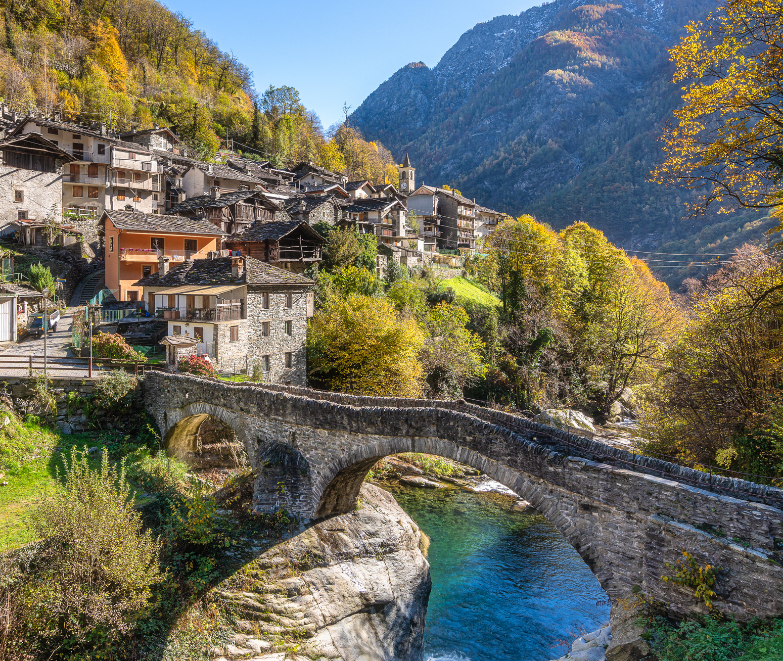 I sentieri che partono dal borgo attraversano antichi ponti in pietra.