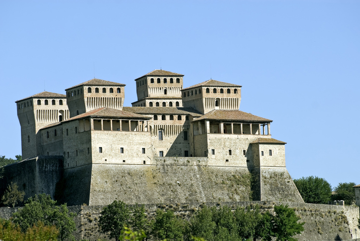 Costruito nel XV secolo dalla famiglia Rossi, il castello si erge maestoso sulla pianura circostante, con torri merlate e ampie mura che testimoniano la sua origine come struttura militare, pensata per proteggere la famiglia proprietaria e controllare i territori limitrofi.