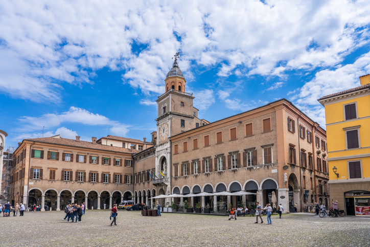 Piazza Grande è un ampio spazio costruito nel XII secolo nel cuore di Modena e circondato da eleganti edifici medievali.