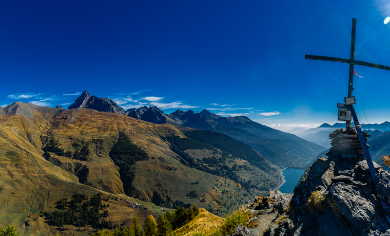 Qui l’autunno scende in punta di piedi e poi si accende all’improvviso, quando i larici iniziano a dorarsi a ondate: il giallo sale lentamente dal fondovalle fino a conquistare le quote più alte, come una fiamma lenta e silenziosa che avvolge pascoli, muretti a secco e antiche mulattiere.