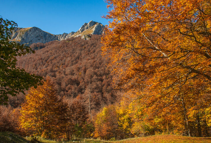In autunno i boschi del Terminillo si colorano di rosso ed arancione, regalando uno spettacolare contrasto con le rocce della montagna.