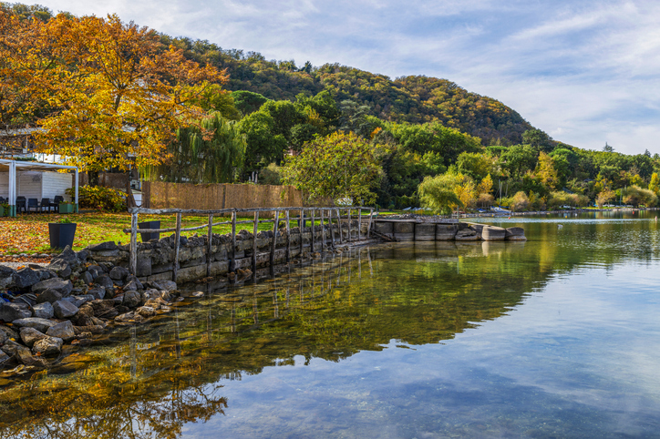 Il sentiero che sale verso il Monte Venere regala viste suggestive sul lago, incastonato in un antico cratere vulcanico. È una delle zone più affascinanti del Lazio per ammirare il foliage, con percorsi accessibili anche ai meno esperti.