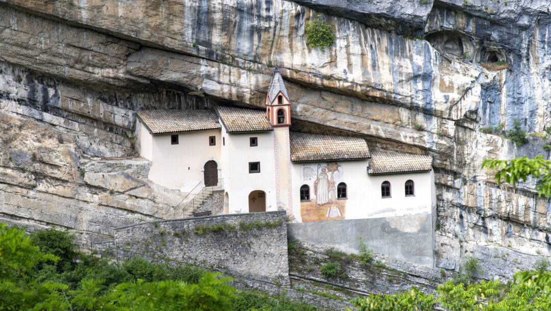 Raggiungere questo eremo è già, di per sé, un’avventura bellissima: partendo da Trambileno si deve percorrere una scalinata scavata nella roccia che conta 102 gradini.