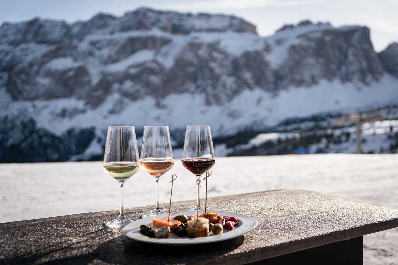 Situata a 2400 metri sul Monte Seceda, la Baita Sofie offre una vasta selezione di vini e champagne in alta quota.